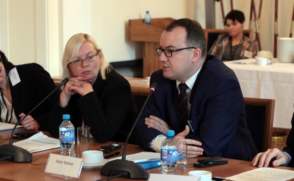 Adam Bodnar, the Polish Commissioner for Human Rights, addressing participants in an expert meeting on strengthening the independence of national human rights institutions in the OSCE region hosted by OSCE/ODIHR, 28 November 2016, Warsaw.