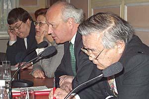 Director of the Geneva Centre for Security Policy and former ODIHR Director Gerard Stoudmann (second right), at an OSCE Academy workshop on security and democratization in Bishkek, 31 March 2003.