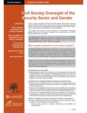 This Practice Note provides a short introduction to the benefits of integrating gender issues into civil society oversight of the security sector, as well as practical information on doing so.