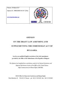 OSCE/ODIHR Opinion on the Draft Law Amending and Supplementing the Ombudsman Act of Bulgaria
