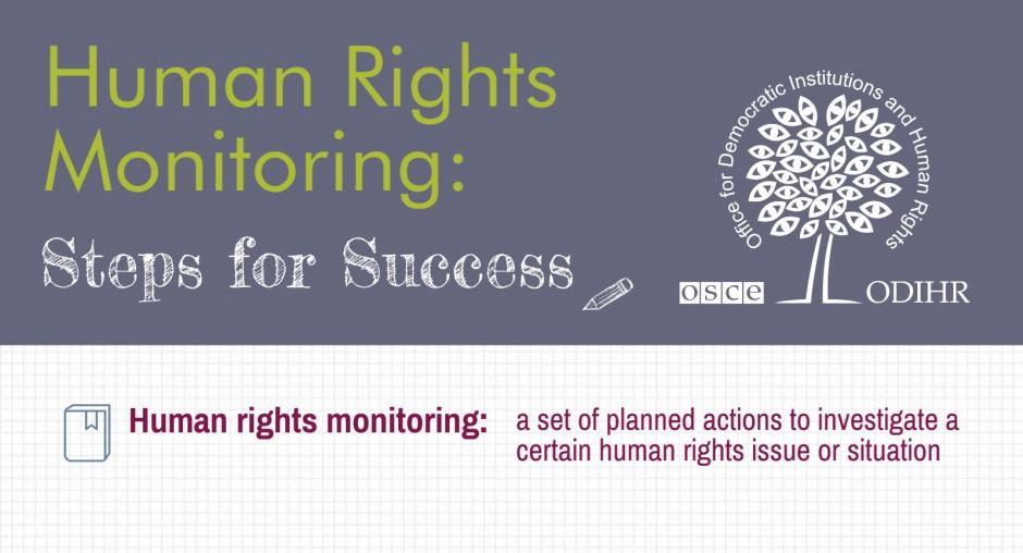 This visual builds upon the Human Rights Monitoring Training Curriculum, a tool developed by ODIHR to strengthen human rights monitoring capacities of civil society organizations in the OSCE region. The curriculum was used on multiple occasions during its development to train Ukrainian civil society organizations as part of the Office’s project Strengthening Dialogue among Civil Society and with Key Government Stakeholders in Ukraine.