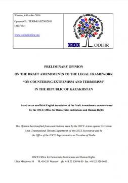 OSCE/ODIHR Opinion on the Draft Amendments to the Legal Framework on Countering Extremism and Terrorism in the Republic of Kazakhstan
