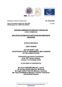 OSCE/ODIHR-Venice Commission Joint Opinion on the Draft Law on Introduction of Amendments and Changes to the Constitution of the Kyrgyz Republic
