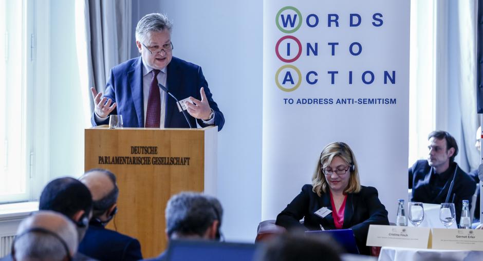 ODIHR has developed the “Words into Action to Address Anti-Semitism” project, generously funded by the German Federal Government, to strengthen the capacity of governments and civil society in OSCE participating States to prevent and respond to anti-Semitism. The multi-year project, launched in 2016, focuses on three broad areas: addressing the security needs of Jewish communities, countering anti-Semitism through education, and fostering coalition building among communities.