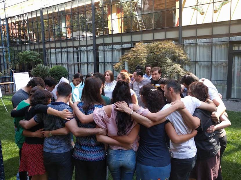 Human rights defenders from Central Asia and the South Caucasus participate in a team-building activity during an ODIHR training event on human rights monitoring, safety and security, Tbilisi, 30 June 2017.