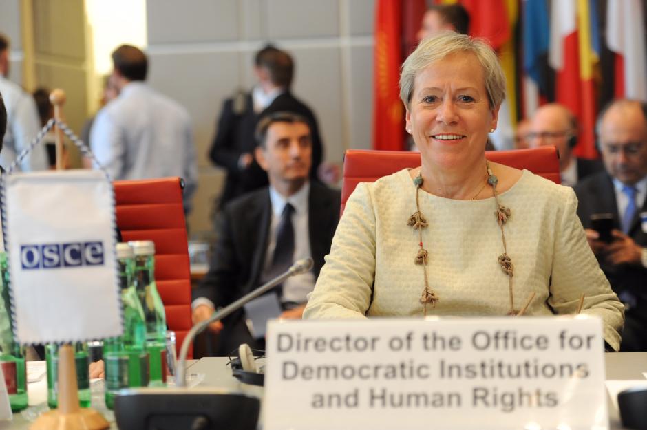 ODIHR Director Ingibjörg Sólrún Gísladóttir speaking during an OSCE Permanent Council meeting, 22 June 2017, Vienna.