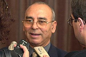 UN Special Rapporteur on Freedom of Religion or Belief, Abdelfatah Amor, a keynote speaker at the OSCE meeting on the issue, talking to journalists in Vienna, 17 July 2003.