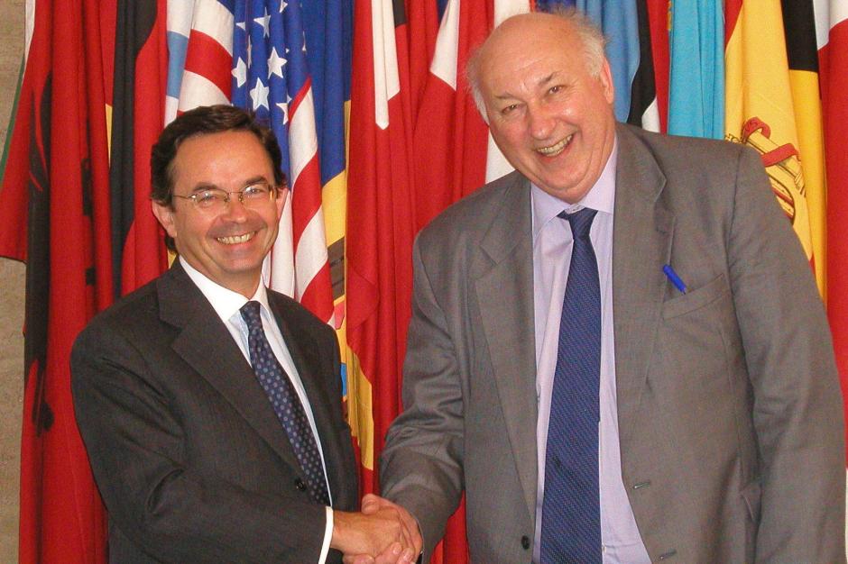 President of the OSCE Parliamentary Assembly Bruce George (right) meeting with ODIHR Director Christian Strohal during a working visit to Warsaw on 8 September 2003.