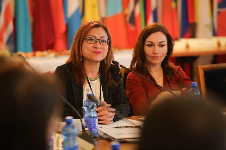 Shandra Woworuntu, member of the U.S. Advisory Council on Human Trafficking and a trafficking survivor, addresses participants in an OSCE/ODIHR expert meeting on protecting the rights of trafficked persons. Warsaw, 13 December 2017.