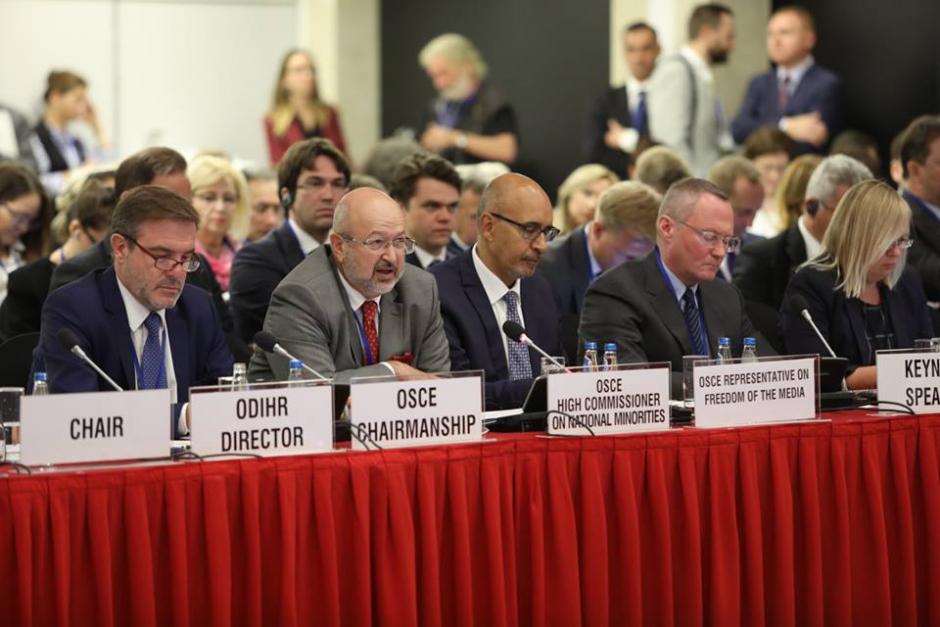 Lamberto Zannier, the OSCE High Commissioner on National Minorities, welcomes participants the opening of the 2018 Human Dimension Implementation Meeting, 10 September 2018, Warsaw.