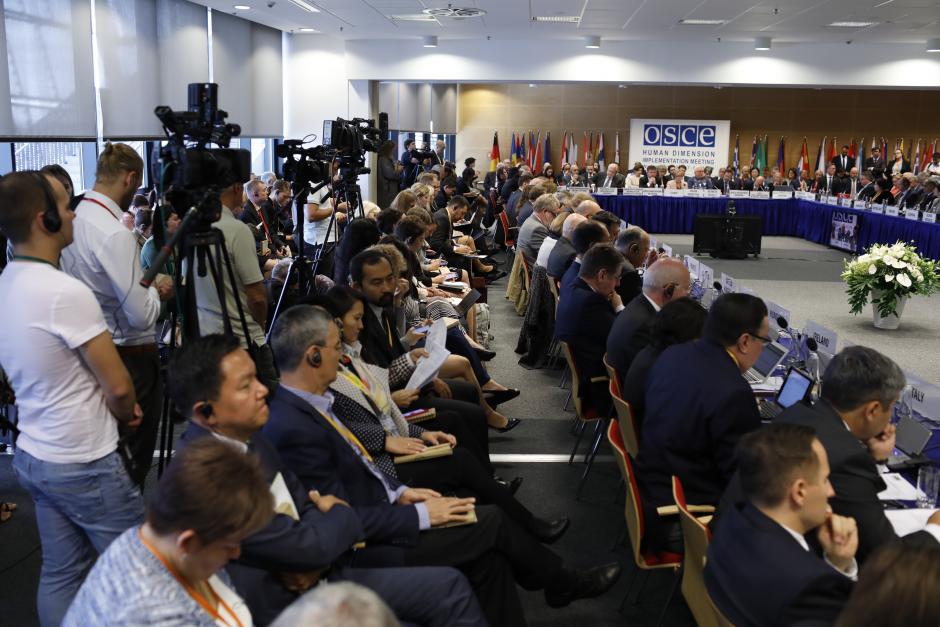 Media representatives at the opening plenary session of the 2019 Human Dimension Implementation Meeting. Warsaw, 16 September 2019.