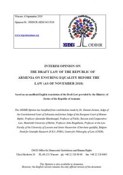 Interim Opinion on the Draft Law of the Republic of Armenia on Ensuring Equality before the Law