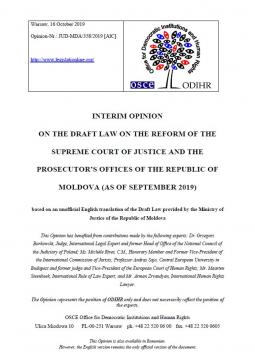 Interim Opinion on the Draft Law on the Reform of the Supreme Court of Justice and the Prosecutor’s Offices of the Republic of Moldova (as of September 2019)