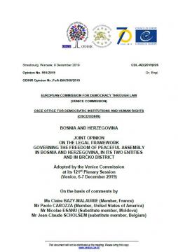 Joint Opinion on the Legal Framework Governing the Freedom of Peaceful Assembly in Bosnia and Herzegovina, in its Two Entities and in Brčko District