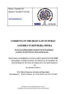Comments on the Draft Law on Public Assembly in Republika Srpska
