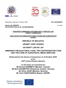 Republic of Moldova: Urgent Joint Opinion on Draft Law 263 Amending the Electoral Code, Contravention Code and Audiovisual Media Services Code