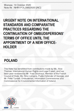 Poland: Urgent Note on International Standards and Comparative Practices Regarding the Continuation of Ombudspersons’ Terms of Office until the Appointment of a New Office-Holder