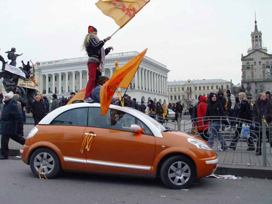 Kyiv's Independence Square goes "orange". Photo taken in December 2004.