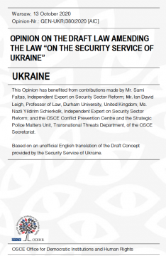 Ukraine: Opinion on the Draft Law Amending the Security Service Law