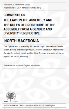 North Macedonia: Comments on the Law and Rules of Procedure of the Assembly from a Gender and Diversity Perspective