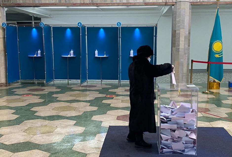 A voter in Nur-Sultan casts her ballot in Kazakhstan’s parliamentary elections on 10 January 2021.