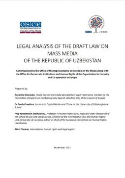 Uzbekistan: Legal Analysis of the Draft Law on Mass Media