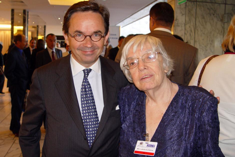 ODIHR Director Christian Strohal (left) with Liudmila Alexeeva, Chairperson of the Moscow Helsinki Group, in Warsaw, 19 September 2005. They took part in Europe's largest human rights and democracy conference, organized by the OSCE.