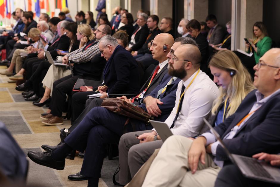 Plenary sessions at the Warsaw Human Dimension Conference covered topics including democratic institutions, fundamental freedoms, tolerance and non-discrimination, rule of law, and humanitarian issues. Warsaw, 29 September 2022.