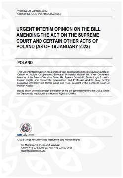 Poland: Urgent Interim Opinion on the Bill Amending the Act on the Supreme Court and Certain Other Acts of Poland (as of 16 January 2023)