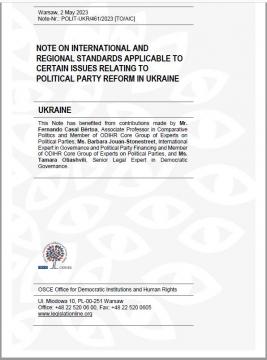 Ukraine: Note on International and Regional Standards Applicable to Certain Issues Relating to Political Party Reform