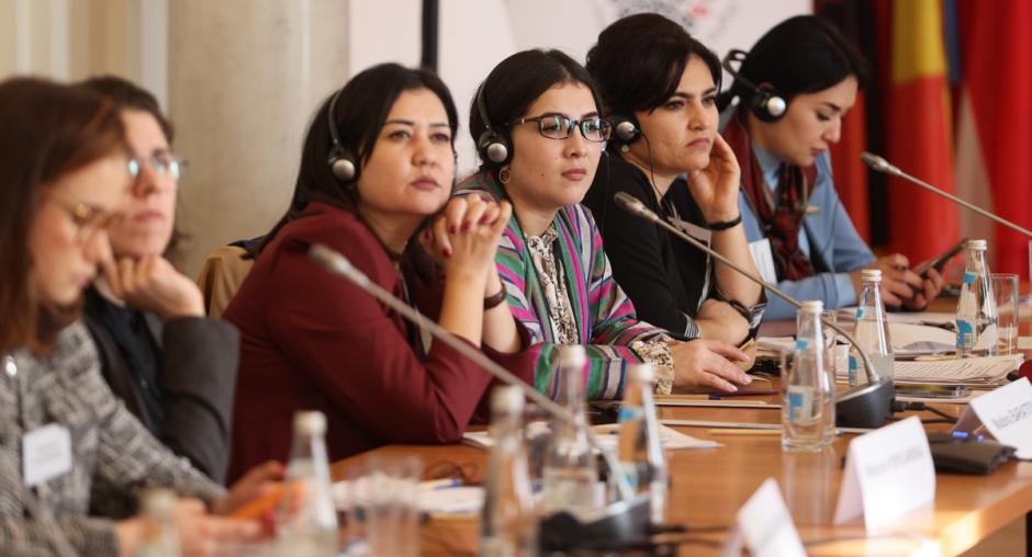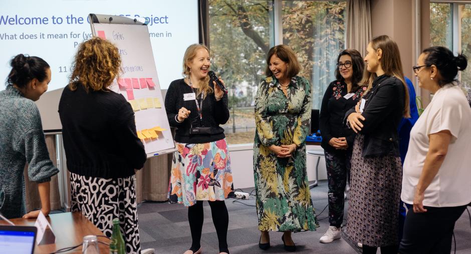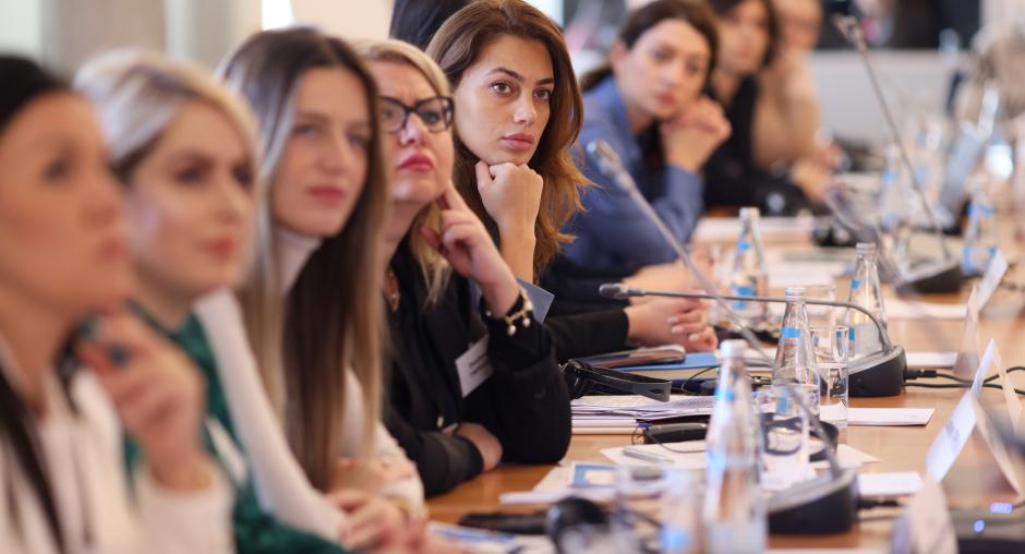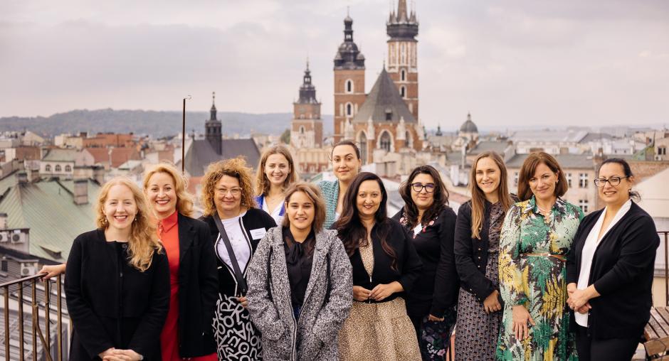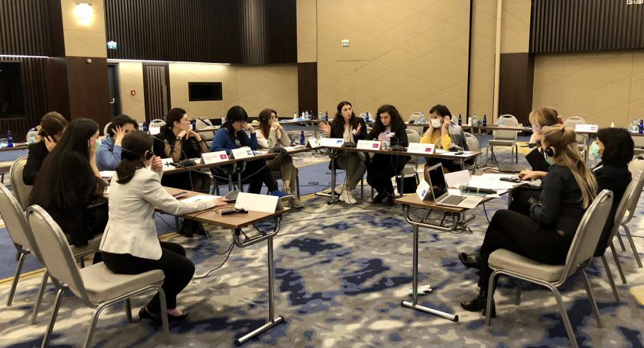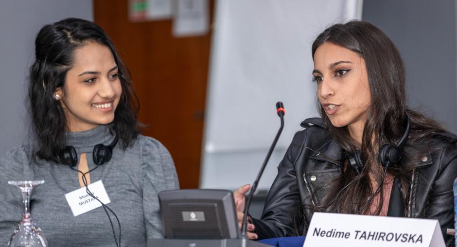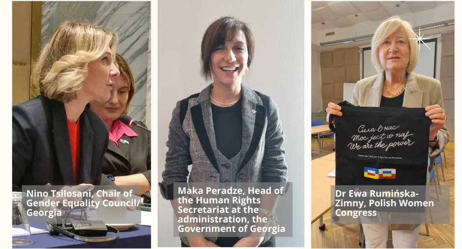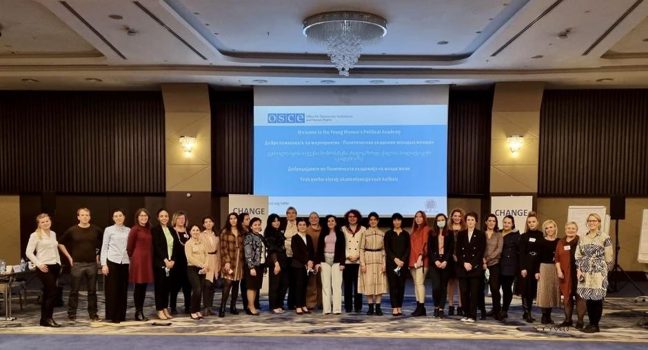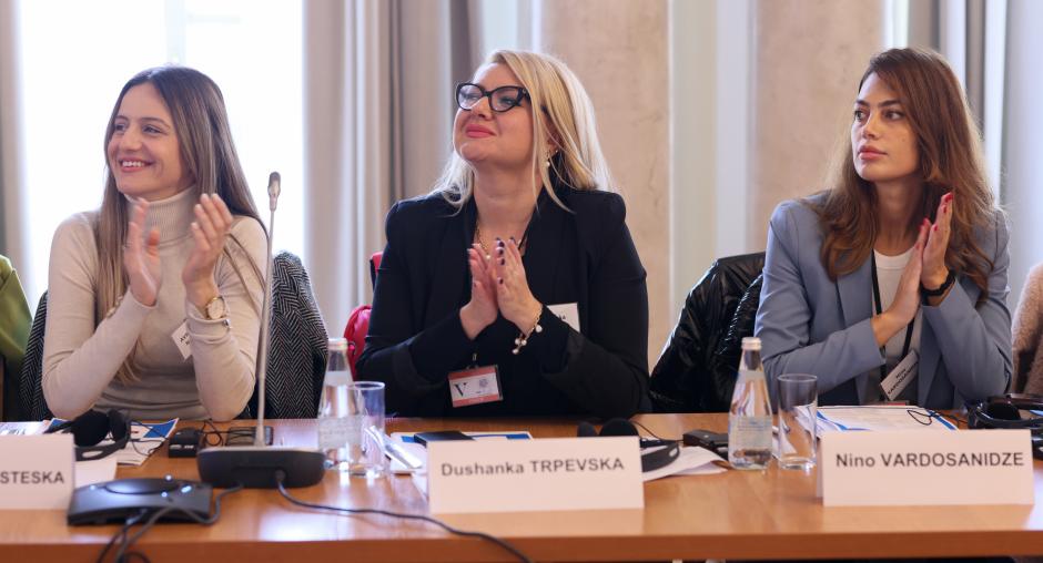 Young Women's Political Academy 2022, 6 - 8 November. Ana Avramoska Nasteska, Dushanka Gorgieva Trpevski and Nino Vardosanidze (l-r), Warsaw, Poland. (OSCE/ODIHR)