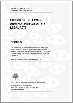 Armenia: Opinion on the Law of Armenia on Regulatory Legal Acts
