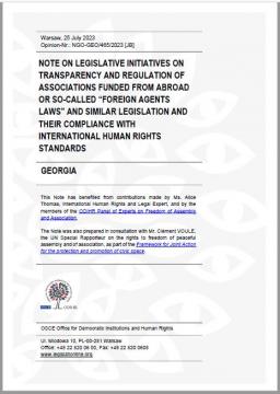 Georgia: Note of the Legislative Initiatives on Transparency and Regulation of Associations Funded from Abroad of So-called "Foreign Agents Laws" and Similar Legislation and Their Compliance with International Human Rights Standards