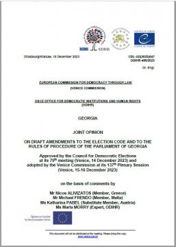 Georgia: Joint Opinion on Draft Amendments to the Election Code and to the Rules of Procedure of the Parliament
