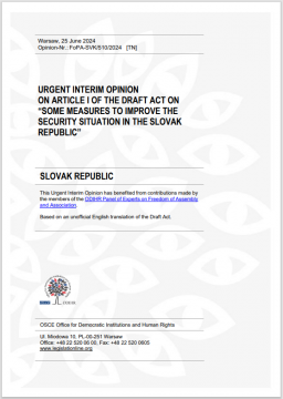 This Urgent Interim Opinion was prepared by the OSCE Office for Democratic Institutions and Human Rights following a request from the Executive Director of the Slovak National Centre for Human Rights.