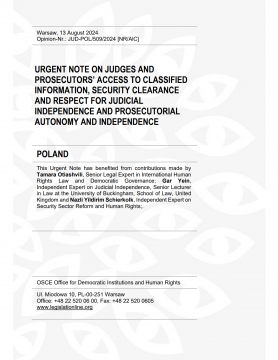 Poland: Urgent Note on Judges and Prosecutors’ Access to Classified Information, Security Clearance and Respect for Judicial Independence and Prosecutorial Autonomy and Independence