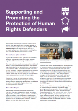 A factsheet explaining the work of ODIHR on supporting and protecting human rights defenders