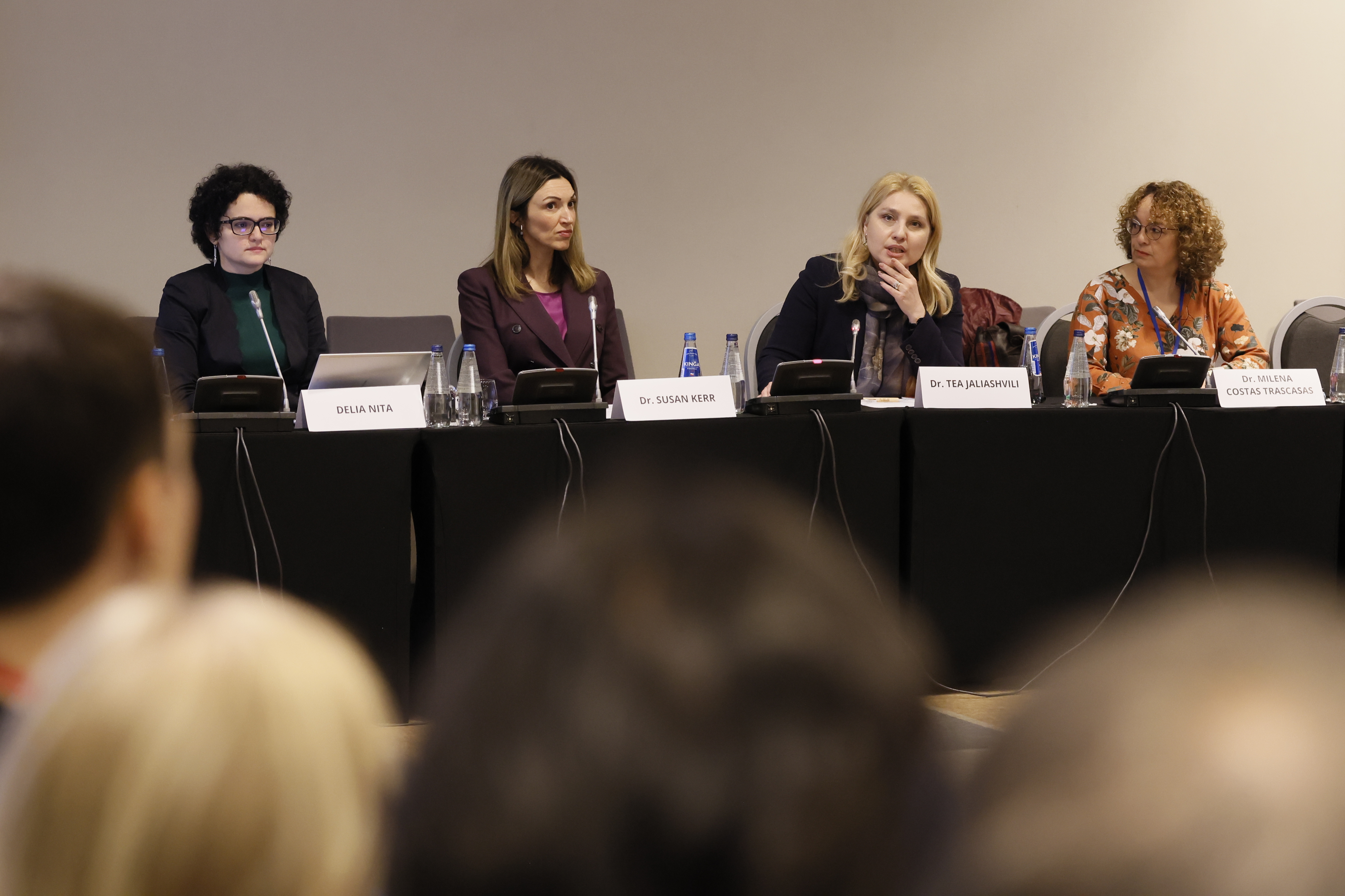 Dr Tea Jaliashvili, ODIHR First Deputy Director, and a panel of experts, presenting a new publication on freedom of thought, launched as challenges multiply in the age of AI