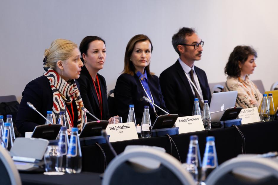 ODIHR First Deputy Director Tea Jaliashvili and a panel of experts discuss trial monitoring as a vital instrument for advancing justice reform. Warsaw, 10 October 2025.