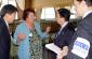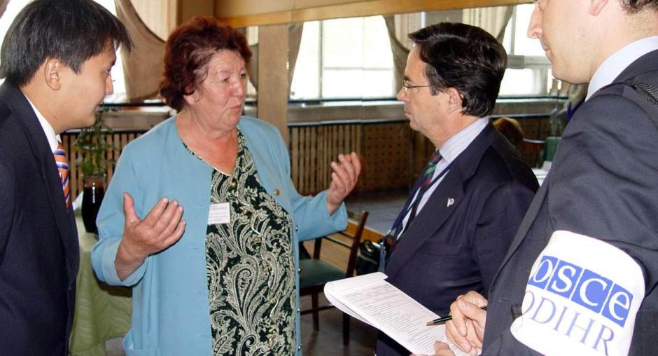 ODIHR Director Amb. Christian Strohal (left) meets the chairwoman of a polling station in Malinovka during parliamentary elections in Kazakhstan, 19 September 2004. (OSCE/Urdur Gunnarsdottir)
