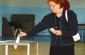 An election commission member in Astana explains the use of the electronic voting equipment during parliamentary elections in Kazakhstan, 19 September 2004. (OSCE/Urdur Gunnarsdottir)