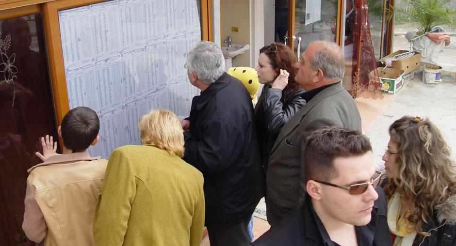 An ODIHR election observer speaks with an official at a polling station in Yerevan during parliamentary elections in Armenia, 12 May 2007. (OSCE/Urdur Gunnarsdottir)