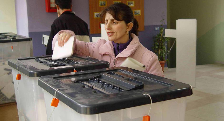 A woman looks into a voting booth at a polling station in Kyiv during parliamentary elections in Ukraine, 30 September 2007. (OSCE/Urdur Gunnarsdottir)