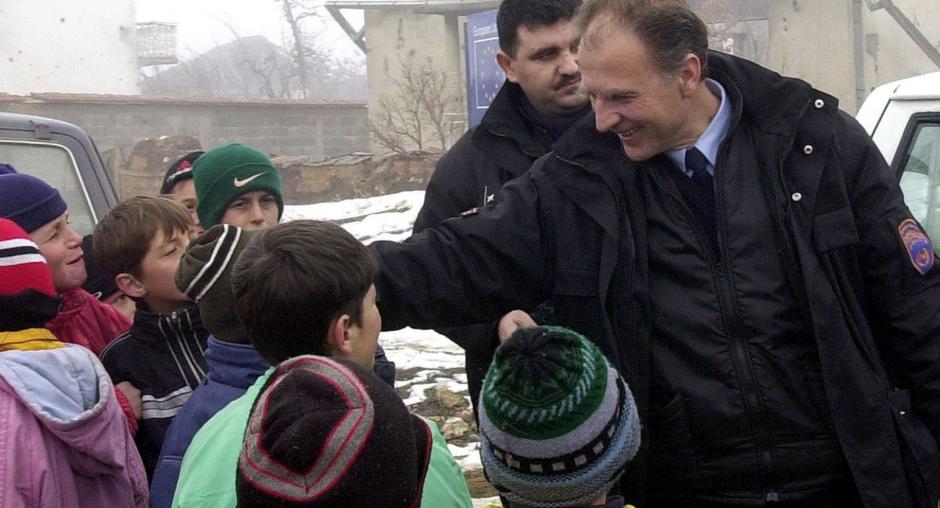 The OSCE is facilitating the redeployment of Macedonian police in former conflict areas, Matejce, January 2002. (Georgi Licovsi)