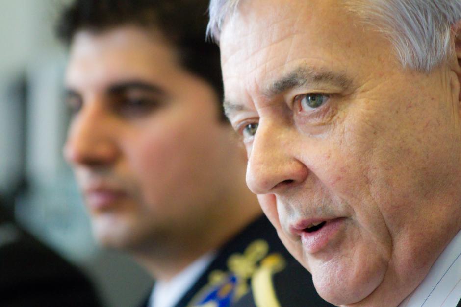 OSCE Senior Police Adviser Kevin Carty answers a question at a press conference on the launch of a guide on building trust and understanding between police and Roma and Sinti, Vienna, 21 May 2010.