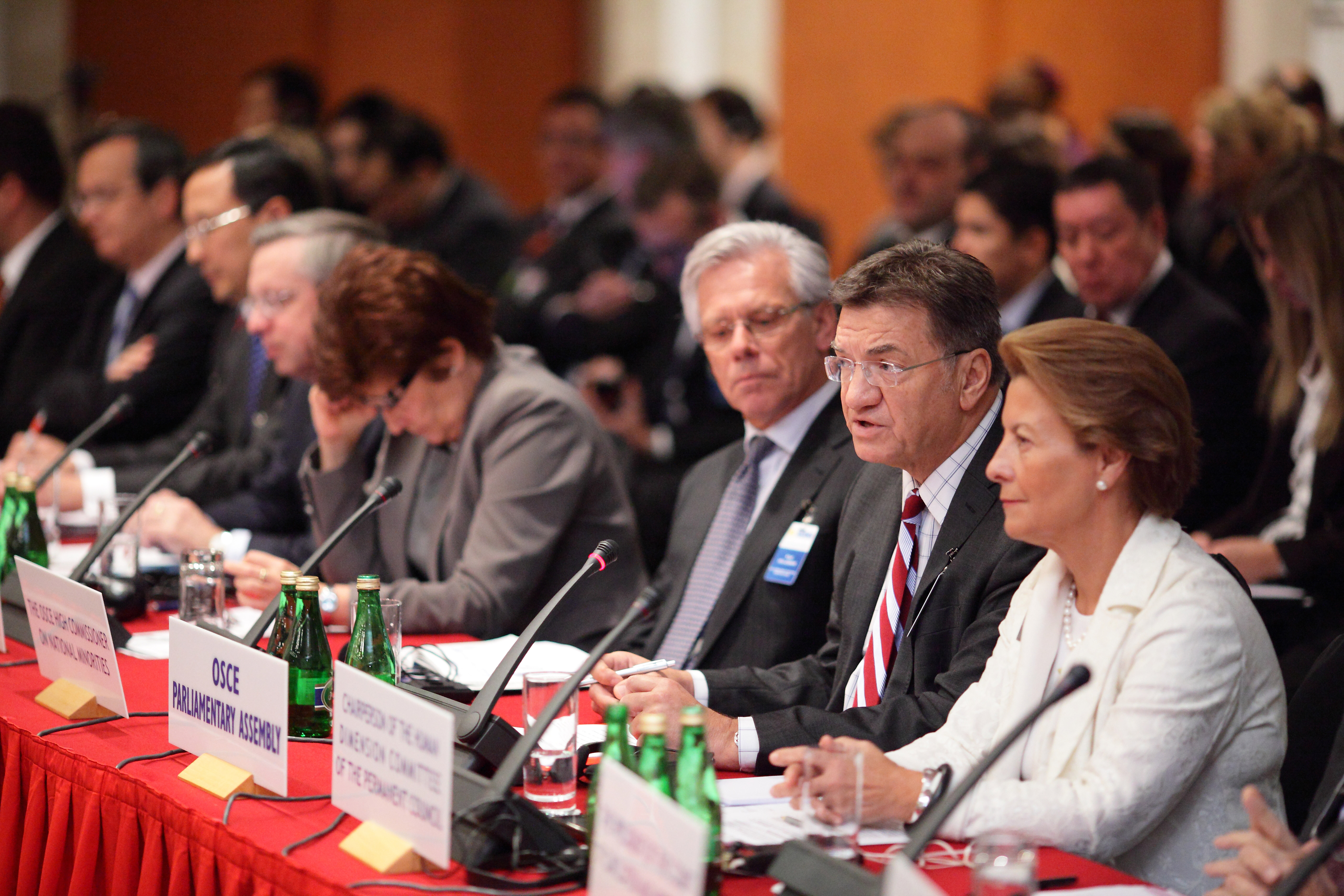 The President of the OSCE Parliamentary Assembly, Petros Efthymiou (second from right), addresses the opening plenary session of the Organization's Review Conference in Warsaw, 30 September 2010.