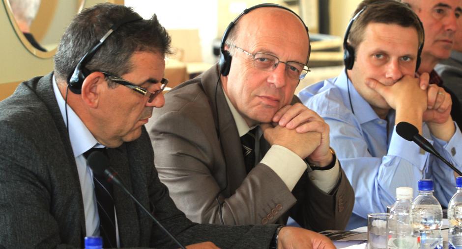 (L-r) Romana Schweiger, the War Crimes Justice Project Regional Co-ordinator; Ambassador Leopold Maurer, the Head of the European Union Delegation to Montenegro and Ambassador Šarunas Adomavičius, the Head of the OSCE Mission to Montenegro at a peer-to-peer meeting of ICTY Judges and their counterparts from the region, organized as part of the War Crimes Justice Project, in Bečići, Montenegro, 27 June 2011. During the meeting Maurer said that bringing war crimes trials to completion is an important part of transitional justice, building democracy and establishing lasting reconciliation. (OSCE/Dejan Kalezić)