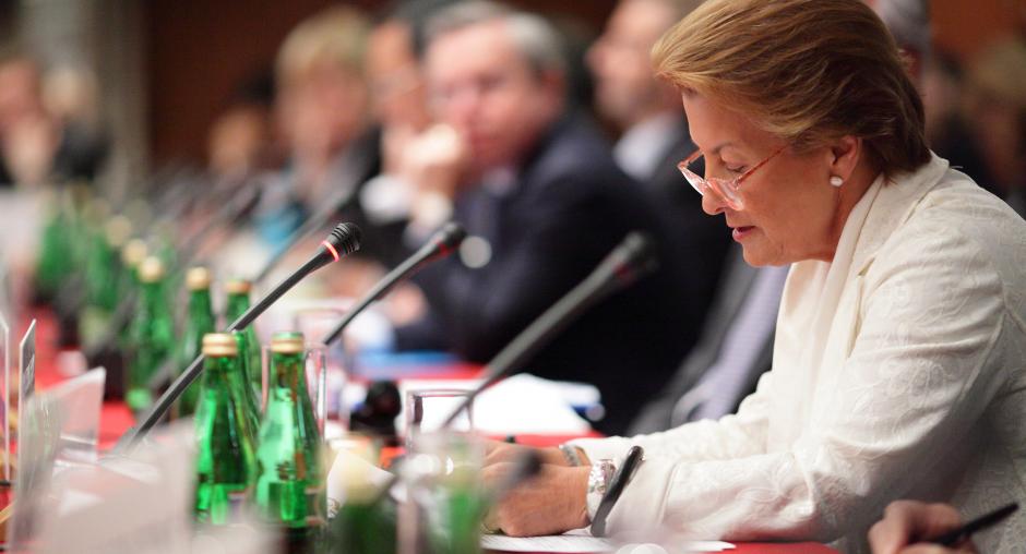 Ambassador Ana Martinho, Permanent Representative of Portugal to the OSCE and Chairperson of the Human Dimension Committee, makes a statement at the opening of the OSCE's Review Conference in Warsaw, 30 September 2010. (Piotr Markowski)