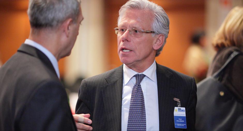 The OSCE's High Commissioner on National Minorities, Ambassador Knut Vollebaek, speaking during the opening session of the Organization's Review Conference, Warsaw, Poland, 30 September 2010. (Piotr Markowski)