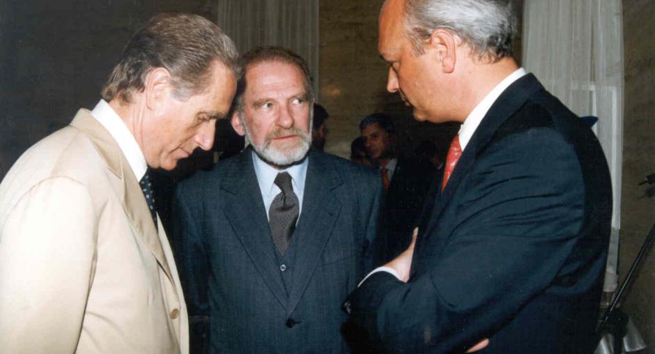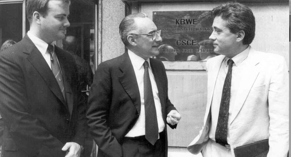 The opening of the ODIHR premises at Al. Ujazdowskie 19 in June 1998 (from left: former OSCE Secretary General Aragona, former Polish Foreign Minister Geremek, former ODIHR Director Stoudmann). (OSCE)